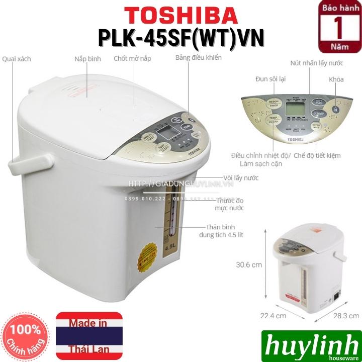 Toshiba PLK-45SF (WT) kết hợp cả 2 chức năng đun sôi và giữ ấm tự động, bạn không cần phải mua bình đun nước riêng, bình thủy riêng đồng thời tiết kiệm thời gian và an toàn hơn so với việc đổ nước sôi từ ấm đun nước vào bình thủy.