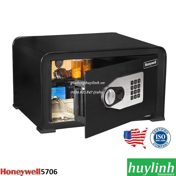 Két sắt Cá nhân Honeywell 5706 thiết kế mặt trên uốn cong bắt mắt với khóa mã số điện tử và dùng phương thức ghi đè lên mã số cũ cho nên phù hợp để cất giữ những vật có giá trị với độ an toàn cao. Được cấu tạo bởi thép vững chắc chống việc nạy phá cửa két hoặc thân két giúp bảo vệ chống trộm, chống mở két trái phép. Thảm trải sàn chống ẩm nhằm bảo vệ những vật có giá trị.