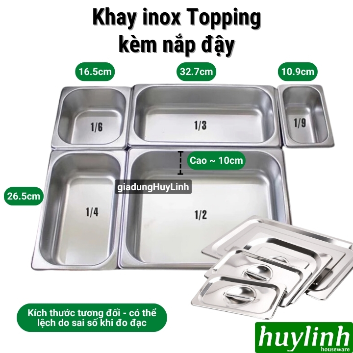 Bộ khay inox đựng topping là một lựa chọn lý tưởng để bảo quản và phục vụ các loại thực phẩm như thạch, trân châu, tào phớ, gia vị hay cháo. Với chất liệu 100% inox cao cấp không nhiễm từ, sản phẩm đảm bảo an toàn thực phẩm và có độ bền cao. Dưới đây là thông tin chi tiết về sản phẩm: