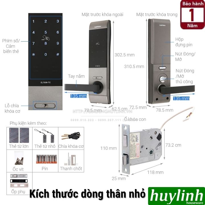 + Chìa cơ trong trường hợp khẩn cấp (hết pin hoặc sốc điện)