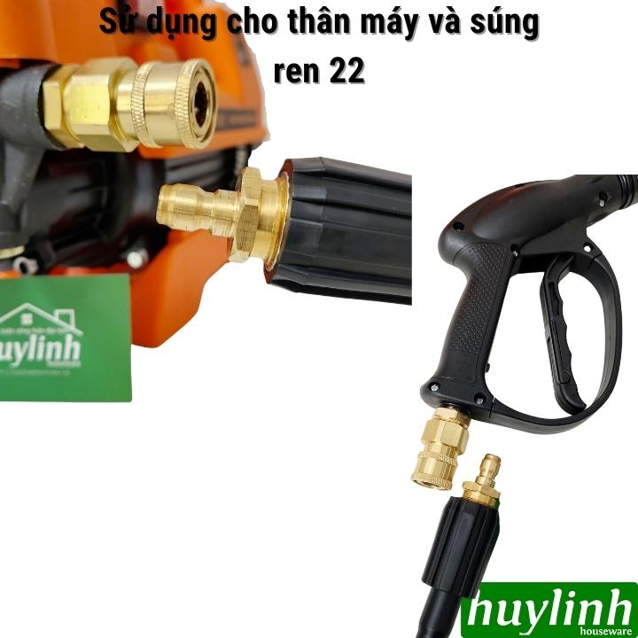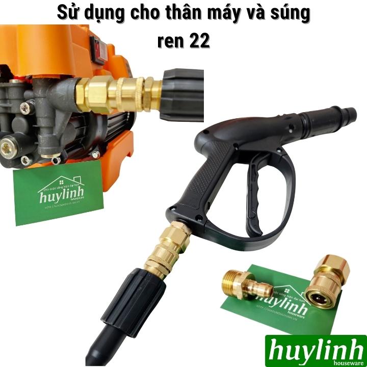 Bộ khớp nối nhanh đầu ra bằng kim loại sử dụng cho máy rửa xe có đầu ren 22 -> Khách hàng vui lòng liên hệ Huy Linh nếu không biết máy rửa xe của Anh Chị có phù hợp không