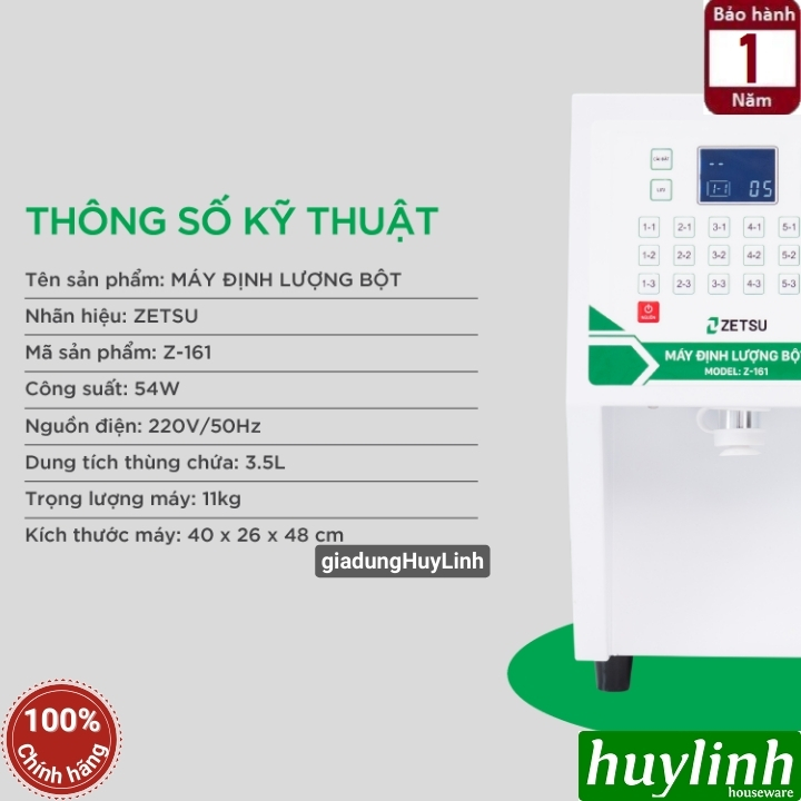 Thông số kỹ thuật của máy định lượng bột Zetsu Z-161