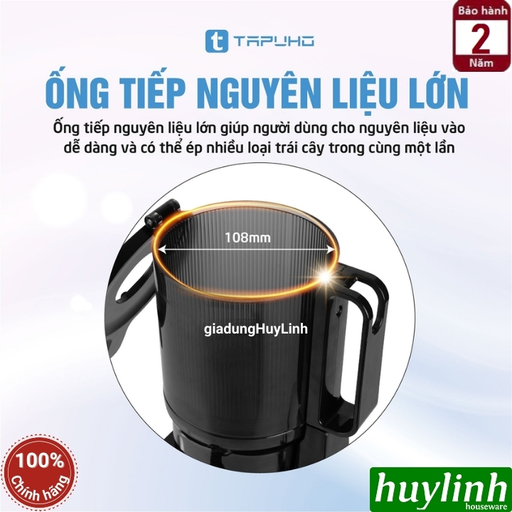 - Ống Tiếp Nguyên Liệu Lớn và Lưới Lọc Hiện Đại: Ống tiếp nguyên liệu rộng 108mm và lưới lọc nước ép hai tầng giúp nước ép trong và ít cợn, dễ dàng tháo lắp và vệ sinh.