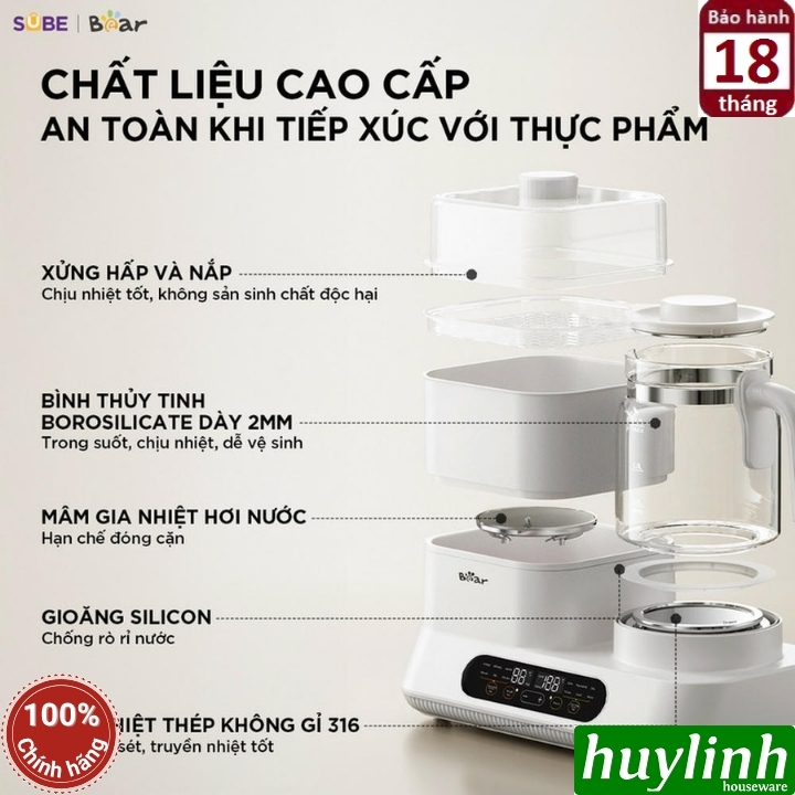 Máy đun nước – hâm sữa – tiệt trùng Bear WW-5H12V78 tích hợp đầy đủ các chức năng cần thiết: