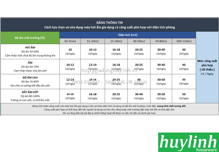 - Công suất hút ẩm 20 lít /24 giờ (ở điều kiện 30oC, 80%)