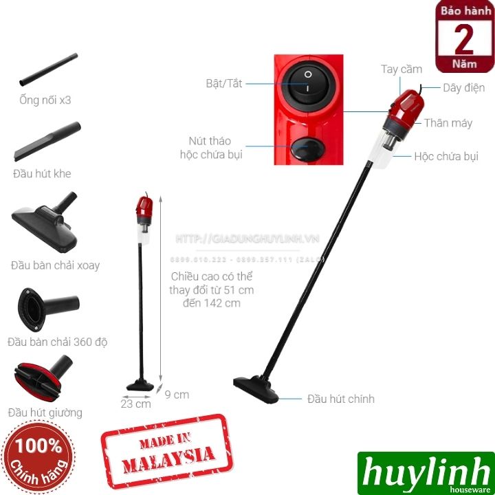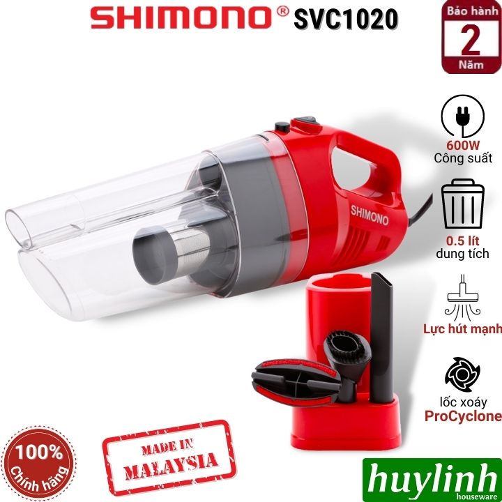 Máy hút bụi Shimono SVC1020 kiểu dáng hiện đại, tay cầm gọn nhẹ, dễ dàng sử dụng máy hút bụi để làm sạch những không gian nhỏ như: xe ô tô, tủ quần áo, gầm giường hay bất cứ ngõ ngách nào trong nhà. Sản phẩm còn được trang bị giá đỡ hút bụi giúp việc làm của bạn trở nên thuận tiện và dễ dàng hơn.