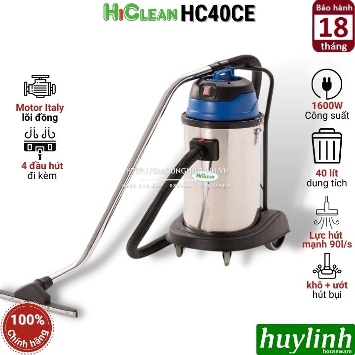 Máy hút bụi nước HiClean HC40CE dùng 1 moto của Italy lõi đồng để hút bụi bẩn, nước bẩn và làm sạch các vết bẩn cứng đầu. Được sản xuất tại Thái lan theo công nghệ của Italia và có kết cấu phù hợp với việc sử dụng ở những nơi gia đình, văn phòng, nhà xưởng vừa và nhỏ