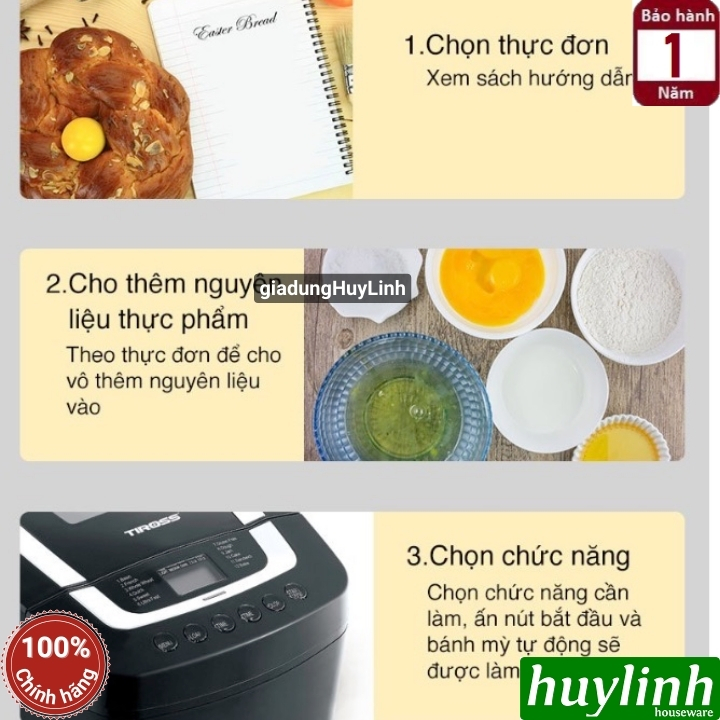 Đặc điểm nổi bật Máy làm bánh mỳ Tiross TS-8230