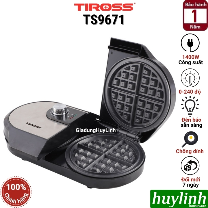 - Công suất mạnh mẽ 1400W: Máy làm nóng nhanh, bánh chín đều hai mặt trong thời gian ngắn, giữ được độ giòn bên ngoài và mềm bên trong.