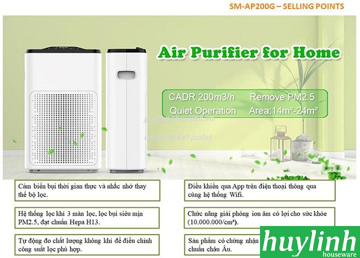 Máy lọc không khí Shimono SM-AP200G phù hợp dùng cho phòng có kích thước từ 14-24m2 với chế độ tự động và hoạt động mạnh cùng nhiều tốc độ cho bạn lựa chọn.
