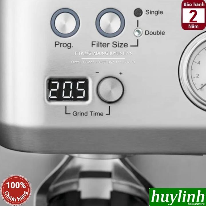 - Đồng hồ áp suất tích hợp cho phép kiểm soát hoàn toàn áp suất chiết xuất khi pha chế. Áp suất chiết xuất hoàn hảo trong quá trình ủ là từ 8 đến 12 bar. Cùng với đó là đồng hồ điện tử 3 số đa chức năng thể hiện thời gian xay và pha cà phê với độ chính xác lên đến 1/10 giây.