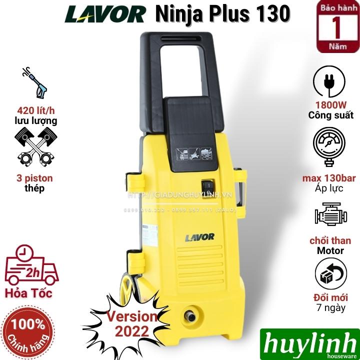 Lavor Ninja Plus 130 hoạt động với motor chổi than, 3 piston thép, đầu bơm bằng trục đồng với van xy-lanh lắp sẵn, có công suât hoạt động lên tới 1800W, lực bơm tối đa tới 130 bar và lưu lượng nước 420 lít/h. Giúp bạn nhanh chóng rửa sạch xe cộ, sân vườn.