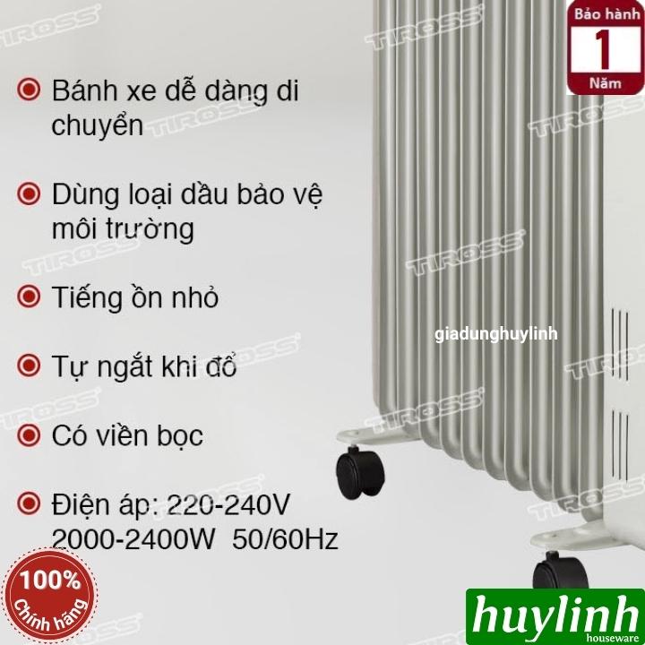Máy sưởi dầu Tiross TS-924 được thiết kế với 11 thanh phát nhiệt bọc dầu cùng công suất 2400W, có khả năng làm ấm nóng cho những diện tích vừa phải như phòng ngủ, phòng học, phòng khám…