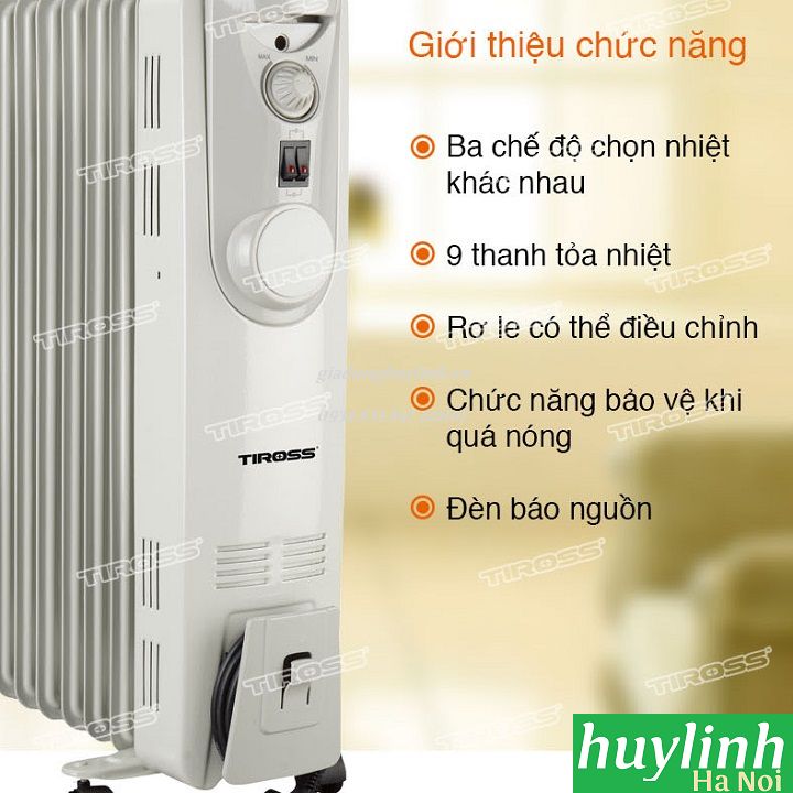 Sưởi dầu Tiross 9 thanh TS-923 Tự động điều chỉnh và cân đối nhiệt độ phòng, đảm bảo độ nóng vừa phải và đều đặn.