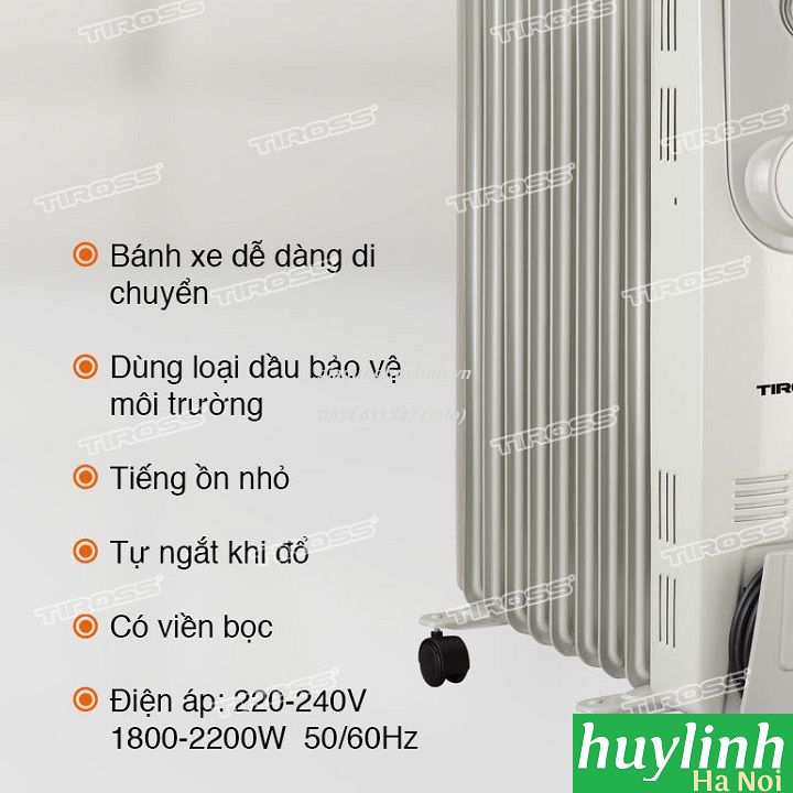 Sưởi dầu 9 thanh Tiross TS-923 cho bạn cảm giác ấm áp trong mùa đông mà không sợ bị khô da hay cảm giác ấm nóng lan tỏa không đều trên cơ thể, máy sưởi dầu tỏa ra hơi ấm xuất phát từ lượng dầu có trong máy được đốt nóng.