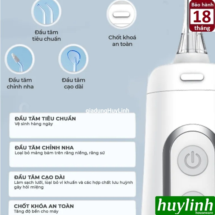 + Đầu phun 0.2~0.4mm tiếp cận mọi khu vực khoang miệng