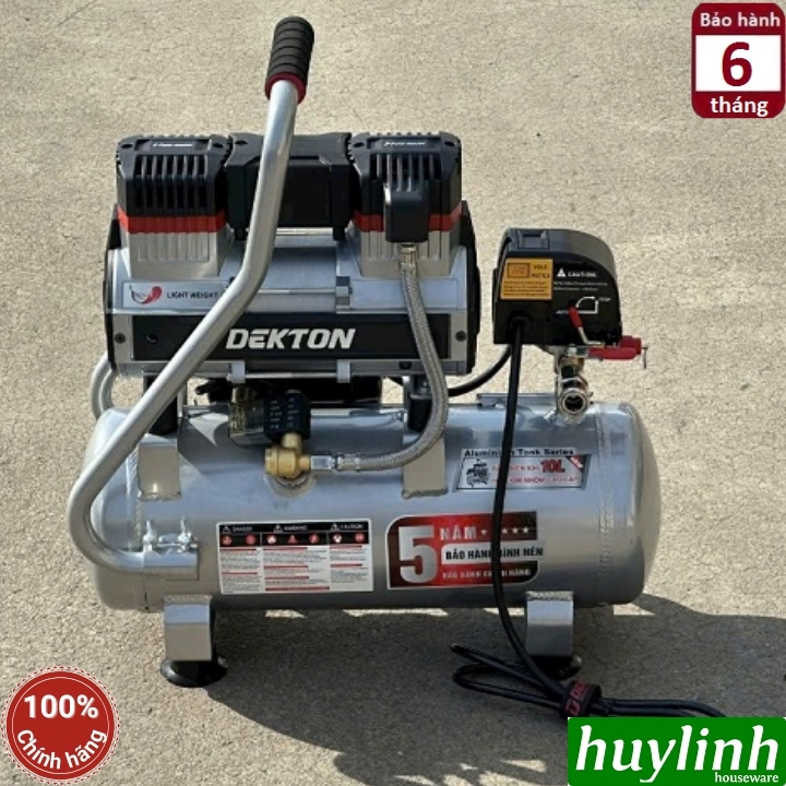 Máy nén khí không dầu Dekton DK-AC2910 PROMAX được thiết kế bình hợp kim nhôm cao cấp dung tích 10 lít, giúp hạn chế tối đa sự ôxy hoá, giúp việc nước đọng sạch và không gây oxy hoá.