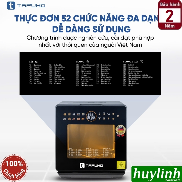 - Chức năng: Chiên nướng không dầu; Chiên hấp kết hợp; hấp; hầm