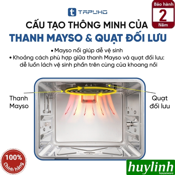 - Cơ chế vận hành chức năng hấp chủ yếu là nồi Tapuho TSF16 sẽ lấy hơi nước được đun nóng từ khay chứa. Hơi nước này được dẫn đến khoang bằng các đường ống. Với công suất hấp lên tới 1200W lượng hơi nước từ các đường ống sẽ nhanh chóng làm chín thực phẩm mà vẫn giữ được hương vị ngon ngọt ban đầu.