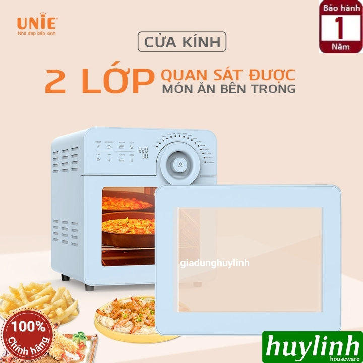 Unie Sky Blue sở hữu tới 10 + 7 chế độ nấu, có thể nướng thịt, làm khoai tây chiên, nướng gà, làm pizza, làm bánh, nướng cá, bít tết, nướng rau củ, nướng bánh mì…