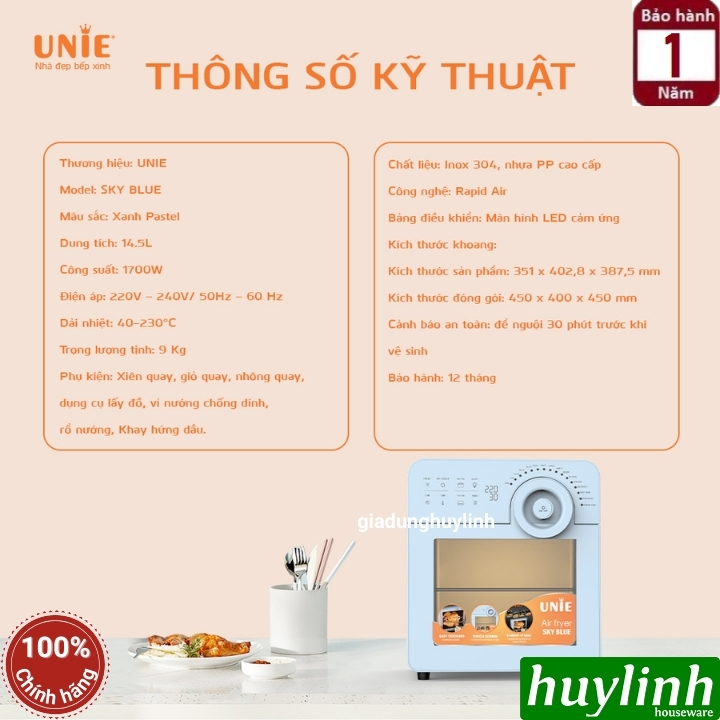 Đặc điểm nổi bật của Nồi chiên không dầu Unie Sky Blue thế hệ mới: