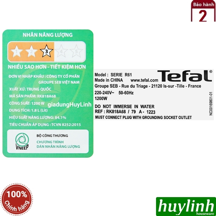 - Thương hiệu Tefal - Pháp, sản xuất tại Trung Quốc.