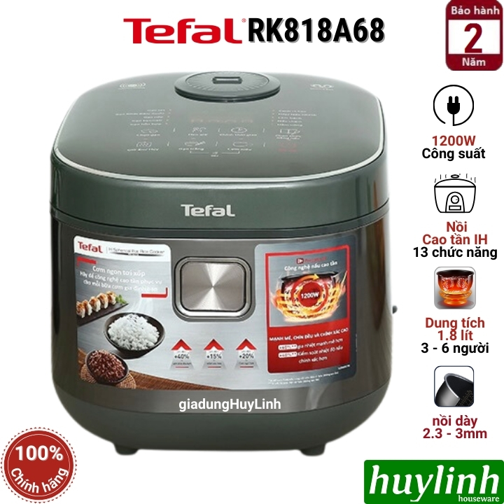 Nồi cơm cao tần Tefal 1.8 lít RK818A68 sở hữu lòng nồi 6 lớp, dạng niêu độc đáo, dày bền, nấu cơm chín đều thơm ngon, tích hợp nhiều chương trình nấu ăn cài sẵn tiện lợi, hỗ trợ bạn nấu nhiều món ngon một cách nhanh chóng.