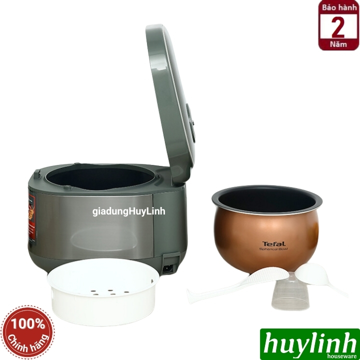 - Phụ kiện đi kèm nồi cơm điện Tefal: xửng hấp, cốc đong gạo, muỗng cơm, muỗng canh.