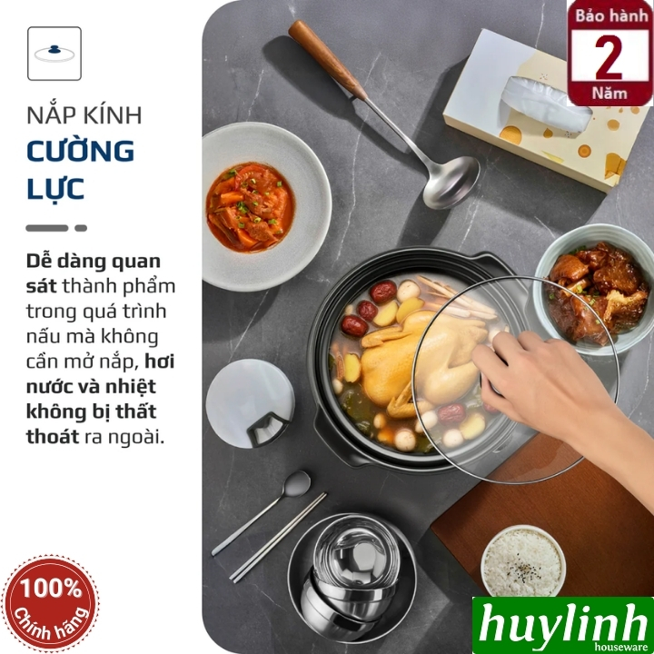 - NẮP KÍNH CƯỜNG LỰC TRONG SUỐT: Dễ quan sát khi nấu, hạn chế mở nắp, giữ trọn nhiệt và hương vị.