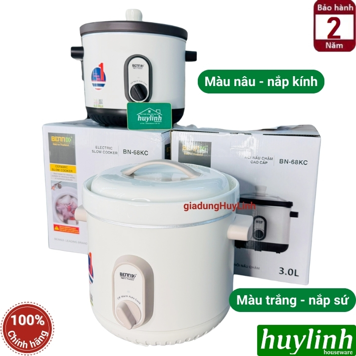 - Bennix BN-68KC có 2 màu: Màu nâu có thiết kế nắp kính – Màu trắng có thiết kế nắp sứ.
