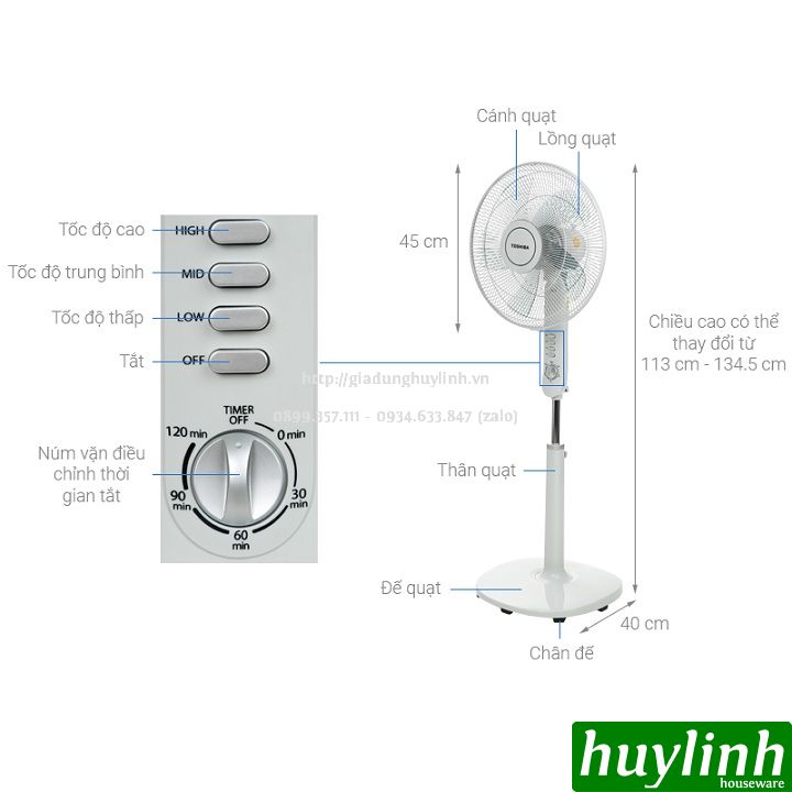 - Đường kính cánh quạt 40 cm