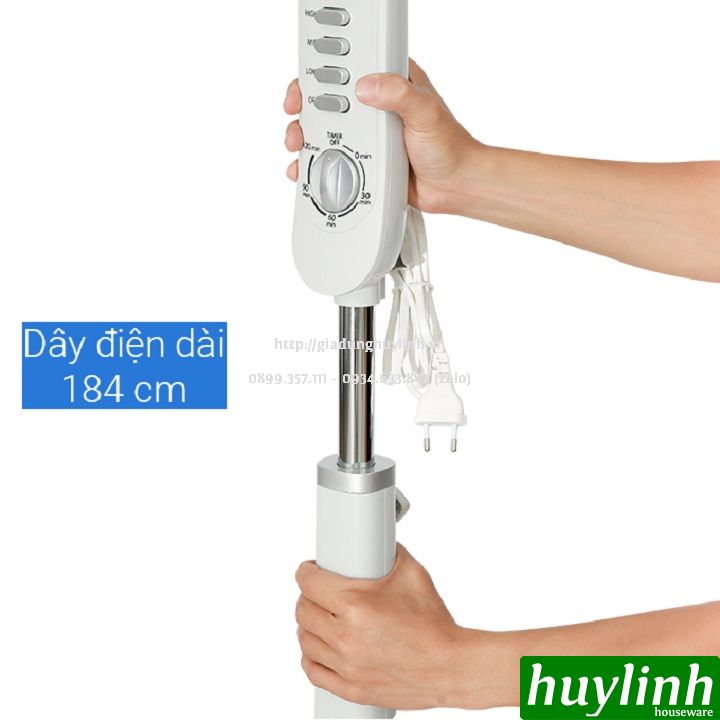 Lồng quạt chắc chắn, nan quạt đan khít, đảm bảo an toàn khi tiếp xúc ở khoảng cách gần. Chiều cao thân quạt có thể điều chỉnh với tối đa 134.5 cm đẩy luồng gió tản xa trong không gian rộng, làm mát tốt hơn.