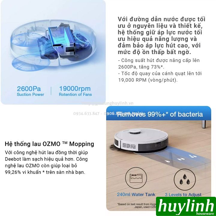 - Hiệu suất vệ sinh mạnh hơn với công suất hút siêu cao 2600Pa