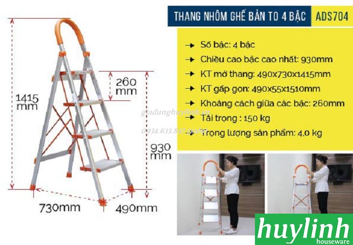 Thang ghế Advindeq ADS-704 được các bà nội trợ rất thích sử dụng vì tính tiện lợi, chắc chắn nhưng lại rất nhẹ, dễ mang vác, thao tác, có thể gấp gọn khi không sử dụng và đặt vào 1 góc nhà, không mất nhiều diện tích.
