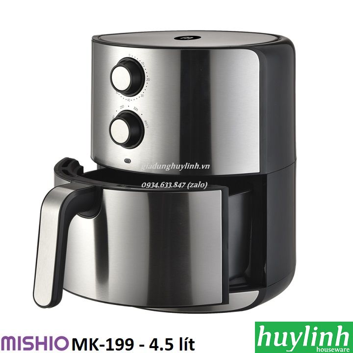 Mishio MK-199 là dòng nồi chiên cơ, nhưng với thiết kế vỏ ngoài sang trọng bằng kim loại, thu hút rất nhiều thiện cảm từ khách hàng, bên cạnh đó lòng nồi 4.5 lít cũng là yếu tố quyết định của sản phẩm.