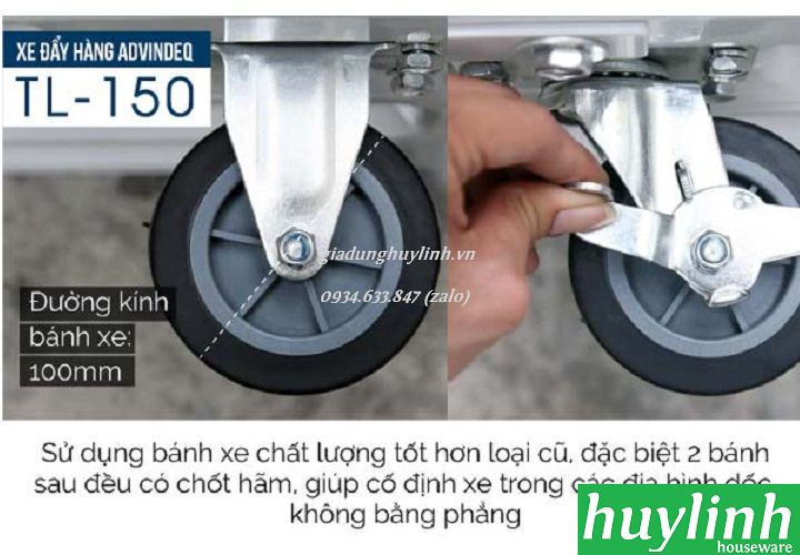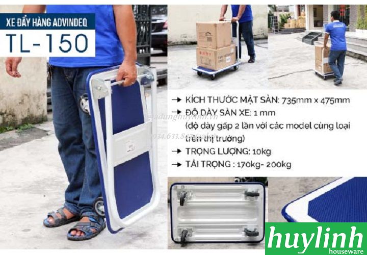 Xe đẩy hàng sàn thép Advindeq TL150 có tải trọng 170kg - 200kg giúp công việc vận chuyển hàng hóa trở nên nhẹ nhàng hơn có thể di chuyển những hàng hóa có trọng lượng lớn mà không hề tốn nhiều sức lực.