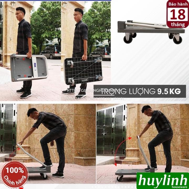- Tay cầm có chiều cao 93cm phù hợp với chiều cao của người sử dụng không quá cao không quá thấp sử dụng đảm bảo tạo cảm giác thoải mái cho người dùng. Tay cầm được làm từ thép cứng độ bền cao và không biến dạng khi trở hàng nặng.